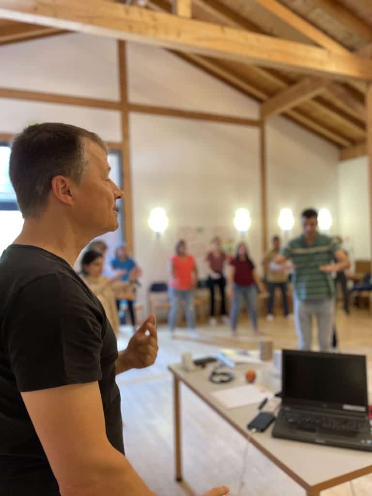 In unseren Settings machen wir die innere Dynamik von Konflikten körperlich erfahrbar und suchen spielerisch nach Lösungen. Bei uns wird geschoben, gezogen, provoziert und dramatisiert, aber auch herzlich gelacht. So entsteht ein sicherer, dynamischer Erfahrungsraum, in dem Teilnehmende ihre:
